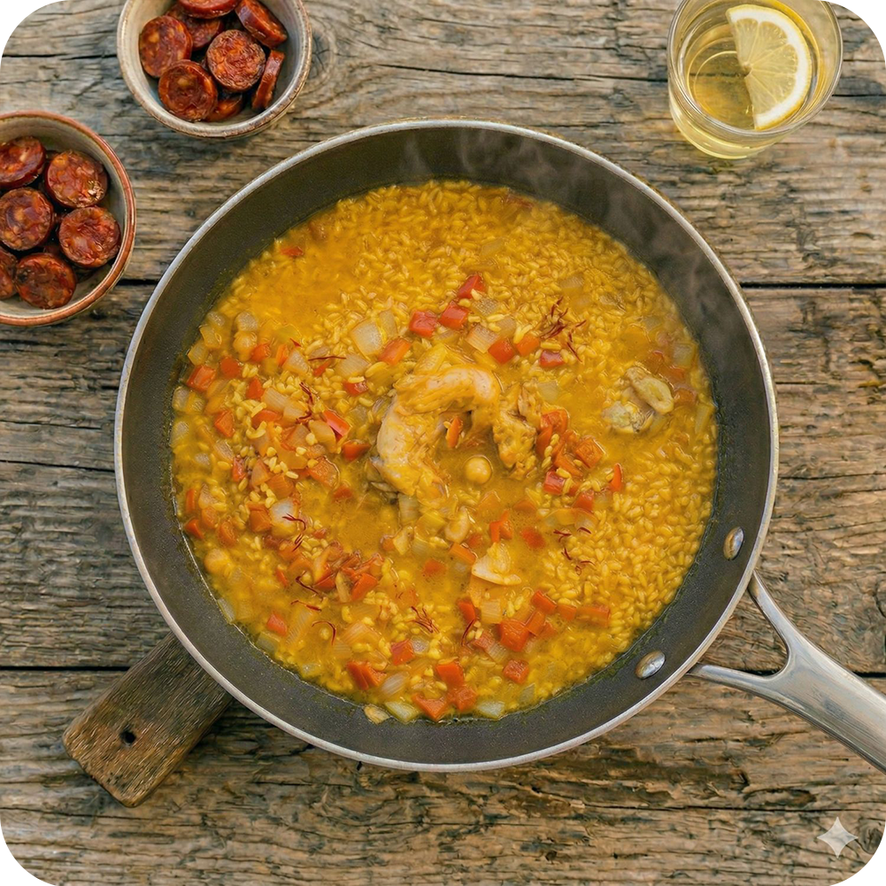 - Po pridaní vývaru už nikdy nemiešajte – to je základ autentickej paelly.