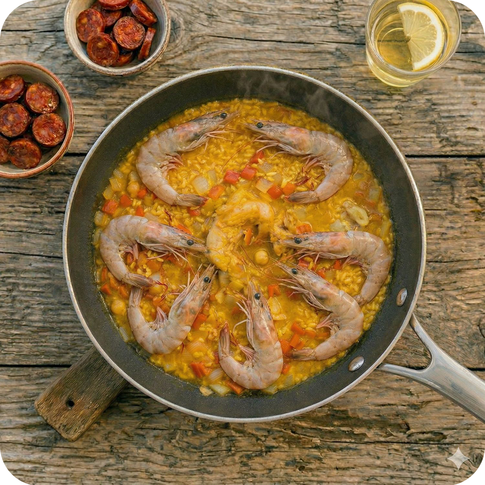- 300 g ryže na paellu (najlepšie Bomba, prípadne Calasparra alebo Arborio)