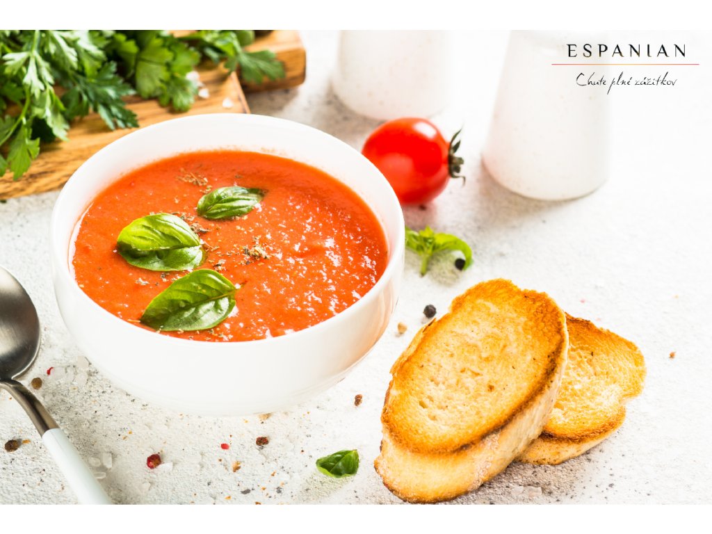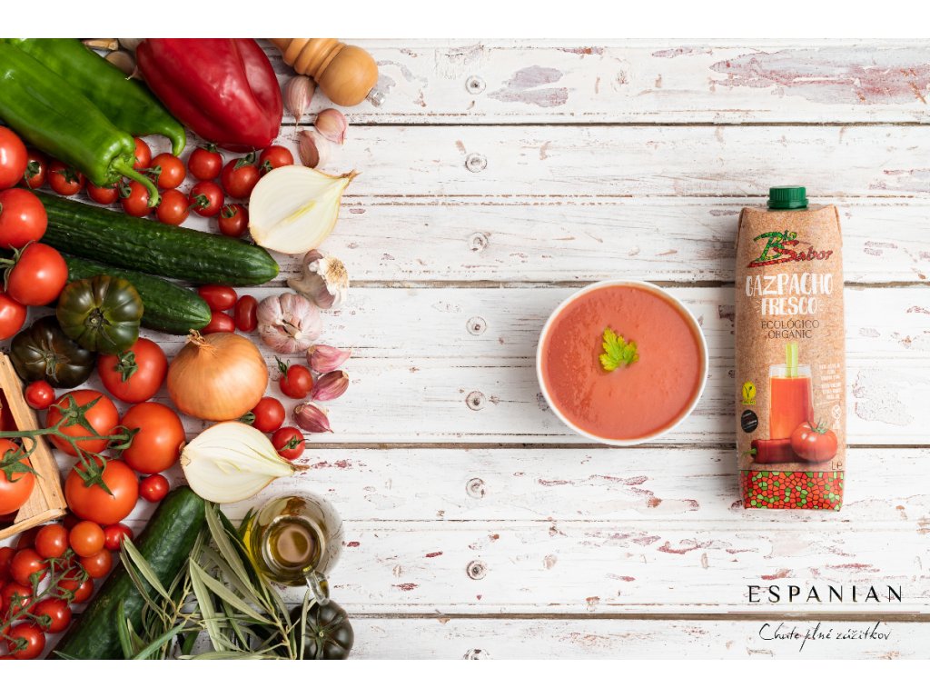 Tradičná španielska zeleninová polievka z Andalúzie s charakteristickou vôňou a chuťou stredomoria. Vyrobená z BIO surovín dozretých na slnku. Hotová na servírovanie. Vychladená výborne osvieži, zasýti a telu dodá vitamíny. Ideálna ako studené predjedlo alebo snack kedykoľvek počas dňa. Nie je nutné skladovať v chladničke.